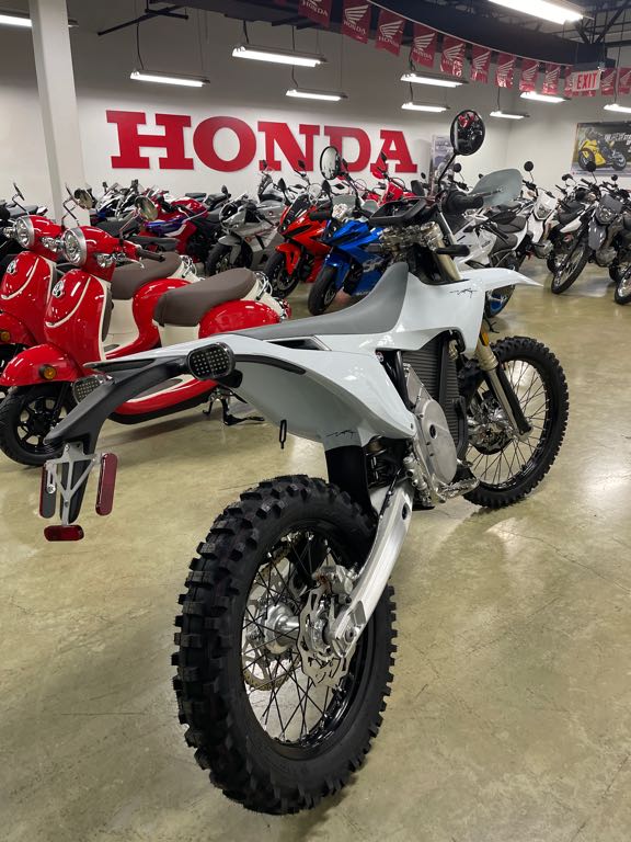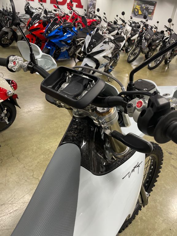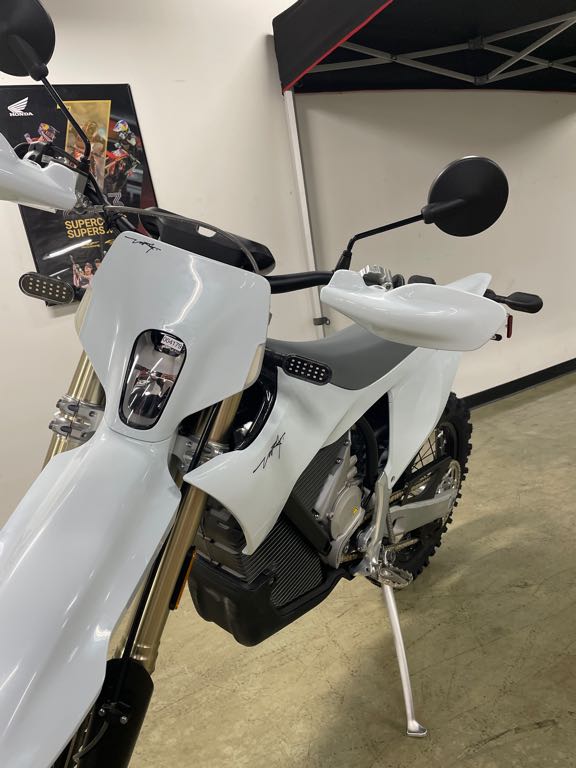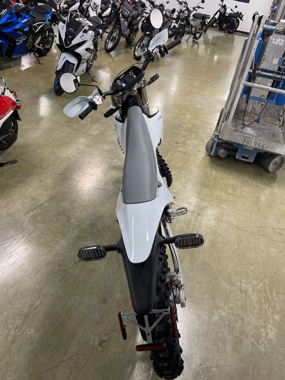 BODY COLOR: SNOW WHITE FOOTPEGS: STANDARD FOOTPEGS FRONT DISC GUARD: FRONT DISC GUARD INCLUDED POWER: ALPHA 80HP REAR BRAKE HAND BRAKE REAR DISC GUARD: REAR DISC GUARD NOT INCLUDED SUSPENSION FOR YOUR WEIGHT: MEDIUM 75-90KG TIRES: METZELER 6 DAYS EXTREME MEDIUM TITANIUM: TITANIUM BOLTS KIT NOT INCLUDED TUBES: STARK POWER TUBE