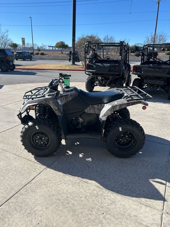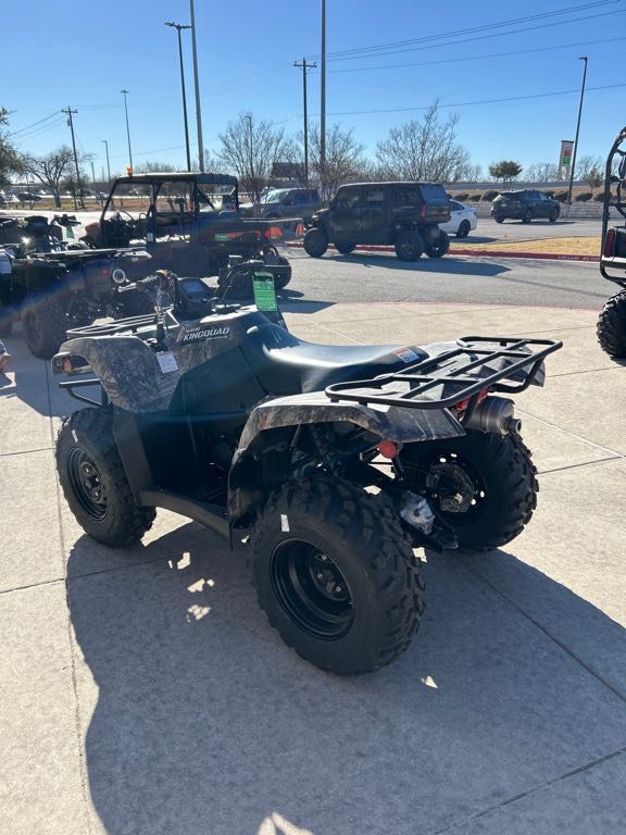 Ready to take riders on their next outdoor adventure, the 2025 Suzuki KingQuad 400ASi Camo is wearing True Timber® Kanati pattern camouflaged bodywork and riding on strong, steel wheels shod with aggressive 25-inch Carlisle® tires. The fully automatic QuadmaticTM transmission has 2WD and 4WD modes to manage rough trail conditions while completing even the most demanding chores. Along with exceptional engine performance across the powerband, its high-performance iridium spark plug, and Pulsed-secondary AIR-injection (PAIR) system help provide outstanding fuel efficiency and impressive performance.