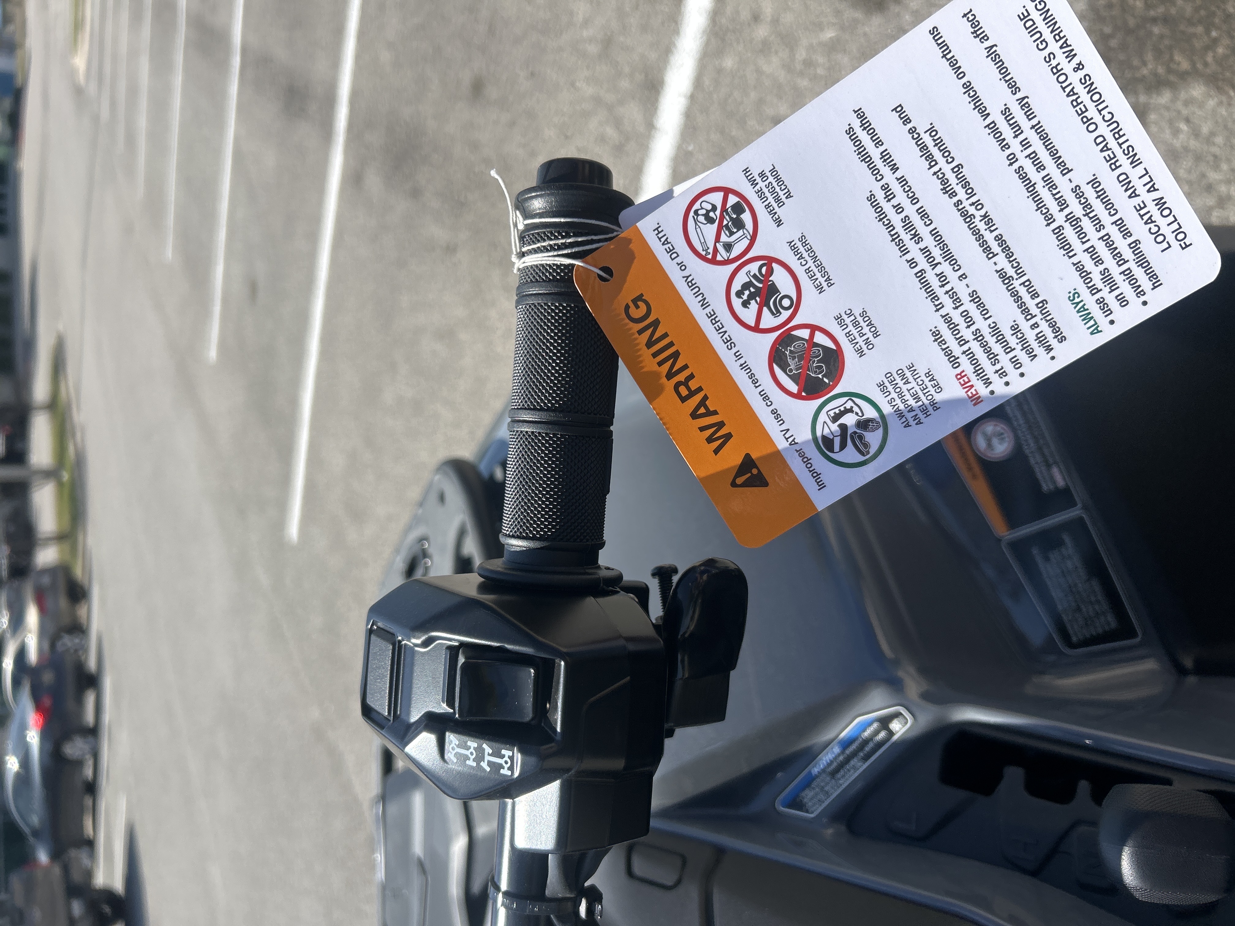Ride responsibly. BRP highly recommends that all ATV drivers take a training course. For safety and training information, see your dealer or, in the U.S.A. call the ATV Safety Institute at 1 (800) 887-2887. ATVs can be hazardous to operate. For your safety: the operator and passenger should wear a helmet, eye protection, and other protective clothing. Always remember that riding and alcohol/drugs don’t mix. Never ride on paved surfaces or public roads. Never engage in stunt driving. Avoid excessive speeds and be particularly careful on difficult terrain. ATVs with engine sizes of greater than 90cc are recommended for use only by those age 16 and older. Never carry passengers on any ATV not specifically designated for such use.
