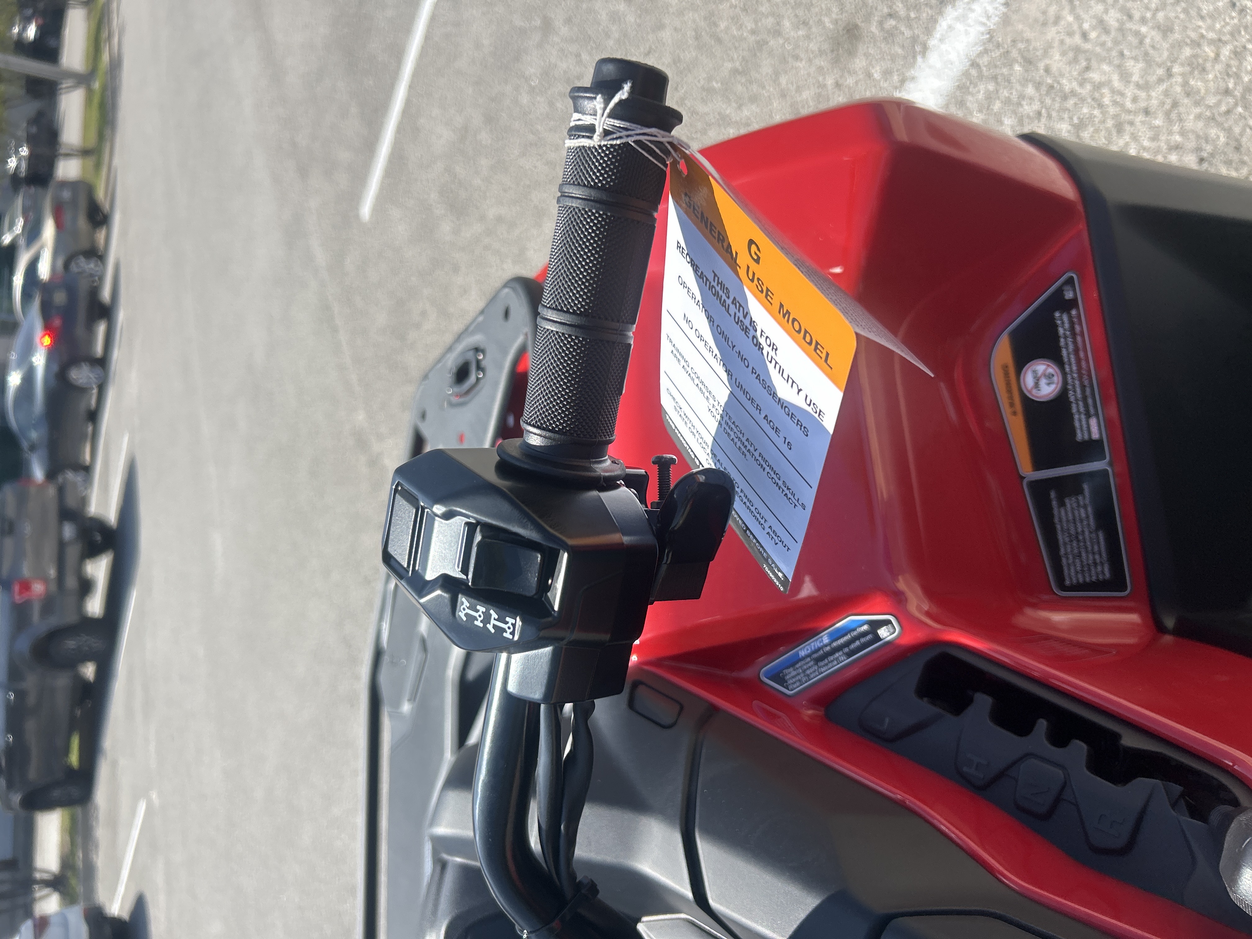 Ride responsibly. BRP highly recommends that all ATV drivers take a training course. For safety and training information, see your dealer or, in the U.S.A. call the ATV Safety Institute at 1 (800) 887-2887. ATVs can be hazardous to operate. For your safety: the operator and passenger should wear a helmet, eye protection, and other protective clothing. Always remember that riding and alcohol/drugs don’t mix. Never ride on paved surfaces or public roads. Never engage in stunt driving. Avoid excessive speeds and be particularly careful on difficult terrain. ATVs with engine sizes of greater than 90cc are recommended for use only by those age 16 and older. Never carry passengers on any ATV not specifically designated for such use.