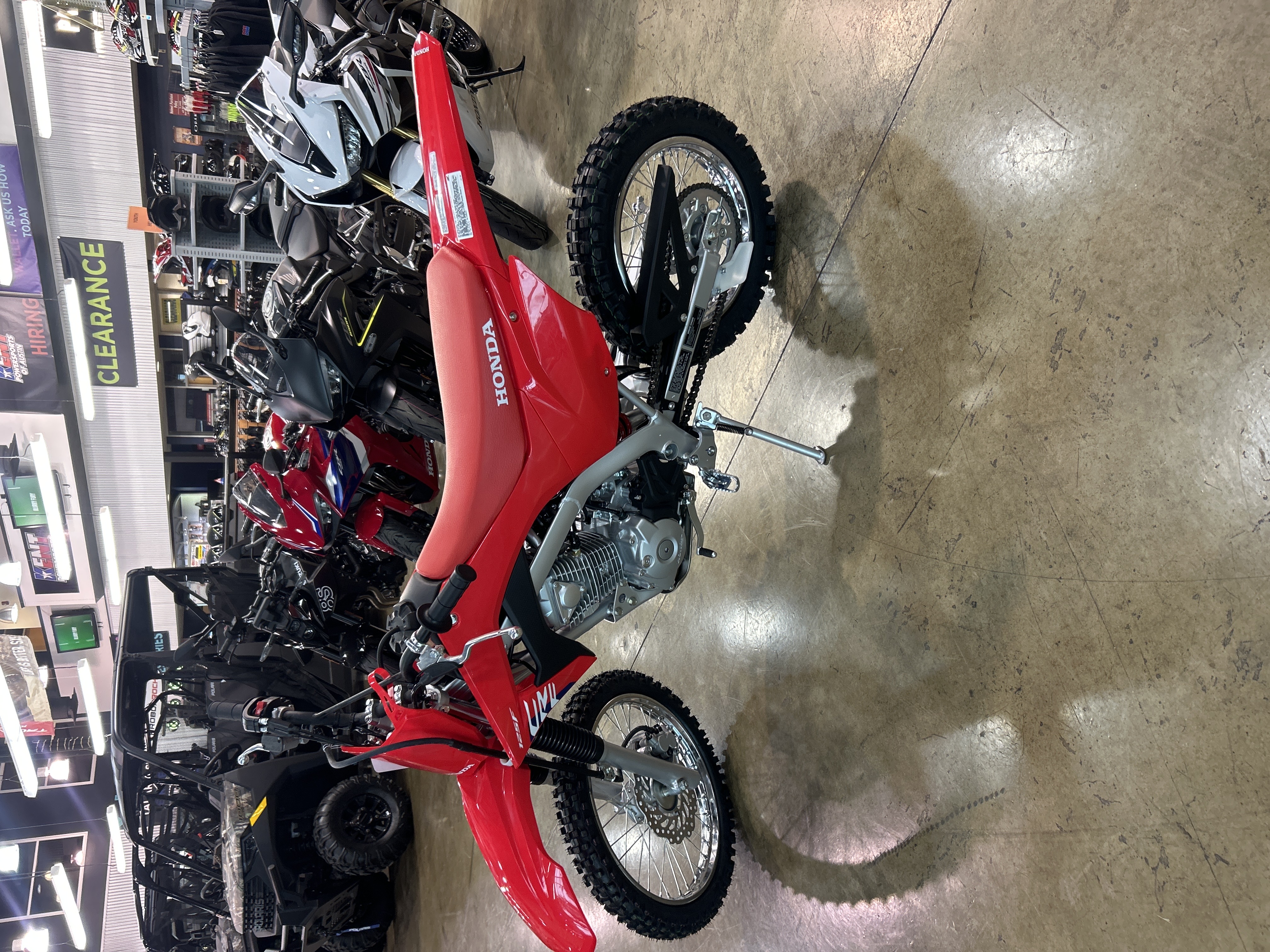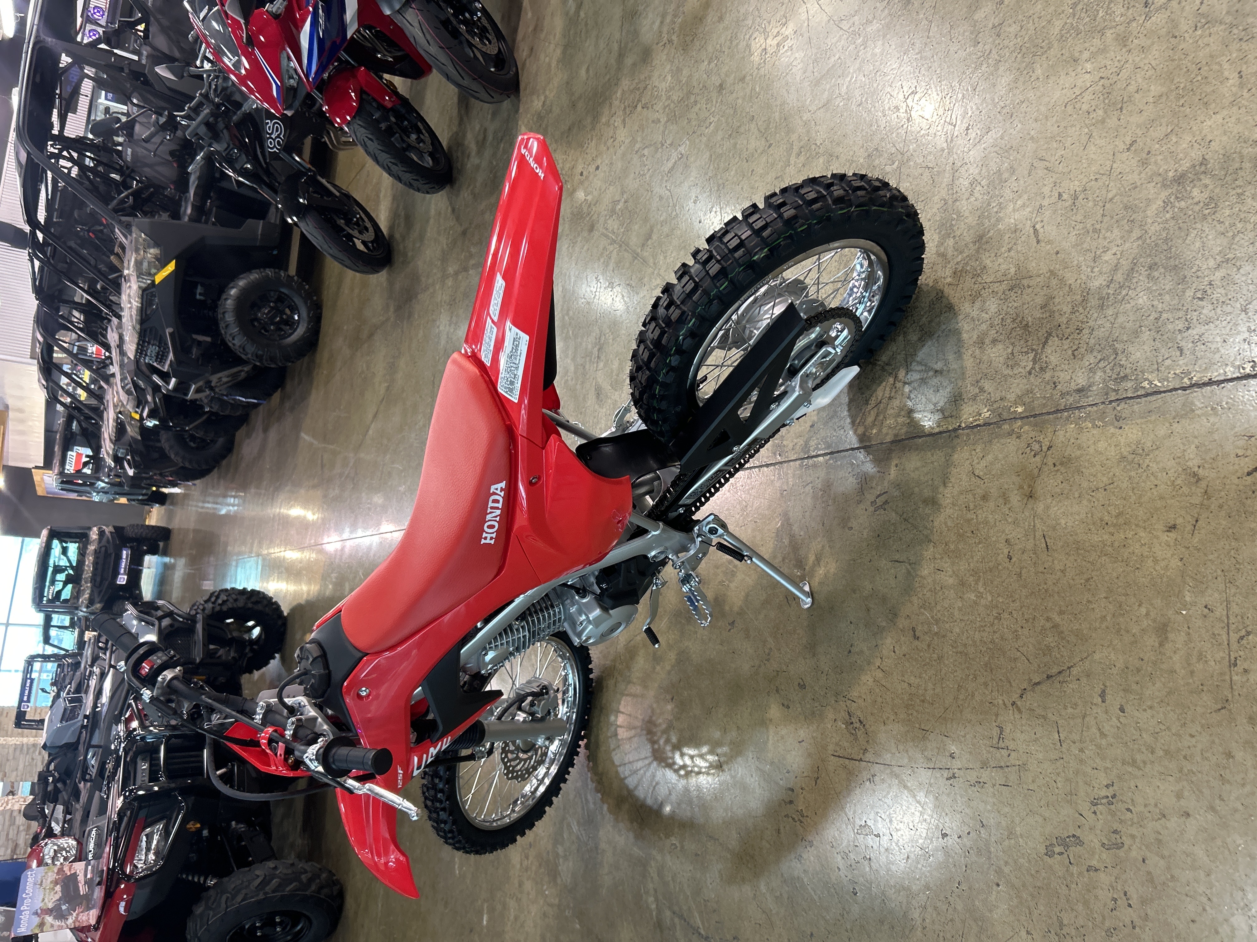 With user-friendly power, legendary Honda reliability, and big bike-style manual clutch, the CRF125F is ready for riders on the rise. Available in both standard and Big Wheel trims, it features fuel injection, electric start, and a durable four-stroke engine–perfect for stepping up or anyone ready to hit the trail and never look back.