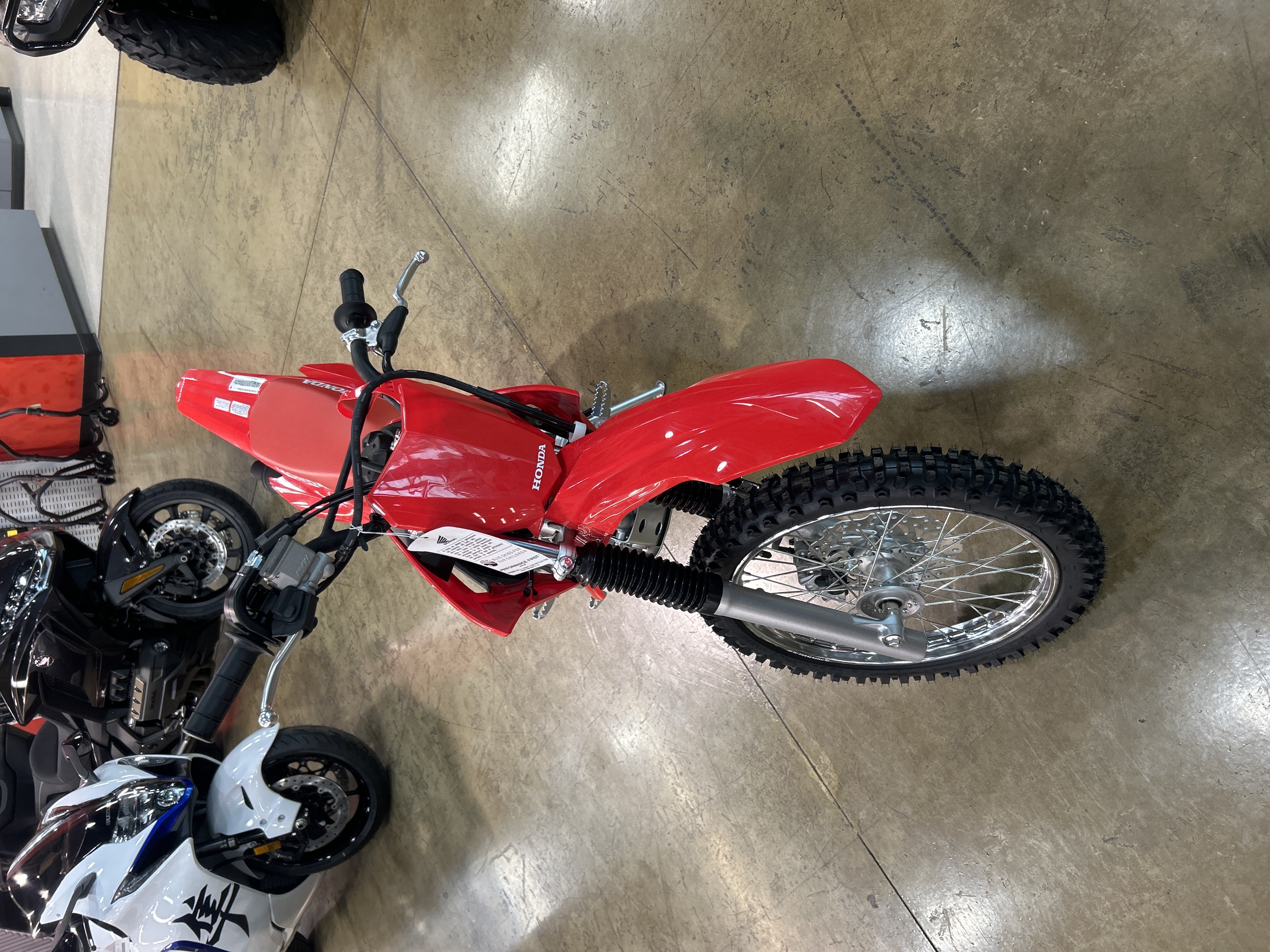 This bike can handle the hard knocks of learning riders. The tough plastic fenders, tank, and other body parts are inspired by our CRF motocross bikes and engineered to shrug off minor dings.