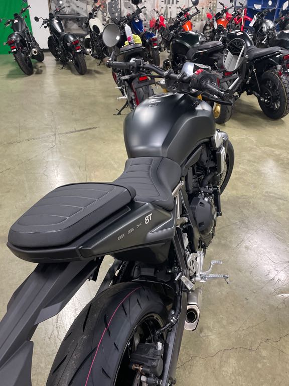 Tuck-and-Roll Style Seat – Inspired by tuck-and-roll custom seats from 1960s and 70s, this stylish seat was reimagined with modern technology and designed specifically for the GSX-8T. It features a high-density foam foundation for enhanced comfort, delivering a premium riding experience. Additionally, the seat’s optimized shape eases mounting and dismounting while providing the rider a shorter reach to the ground.